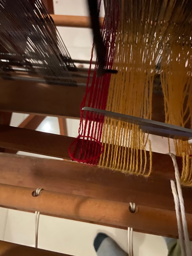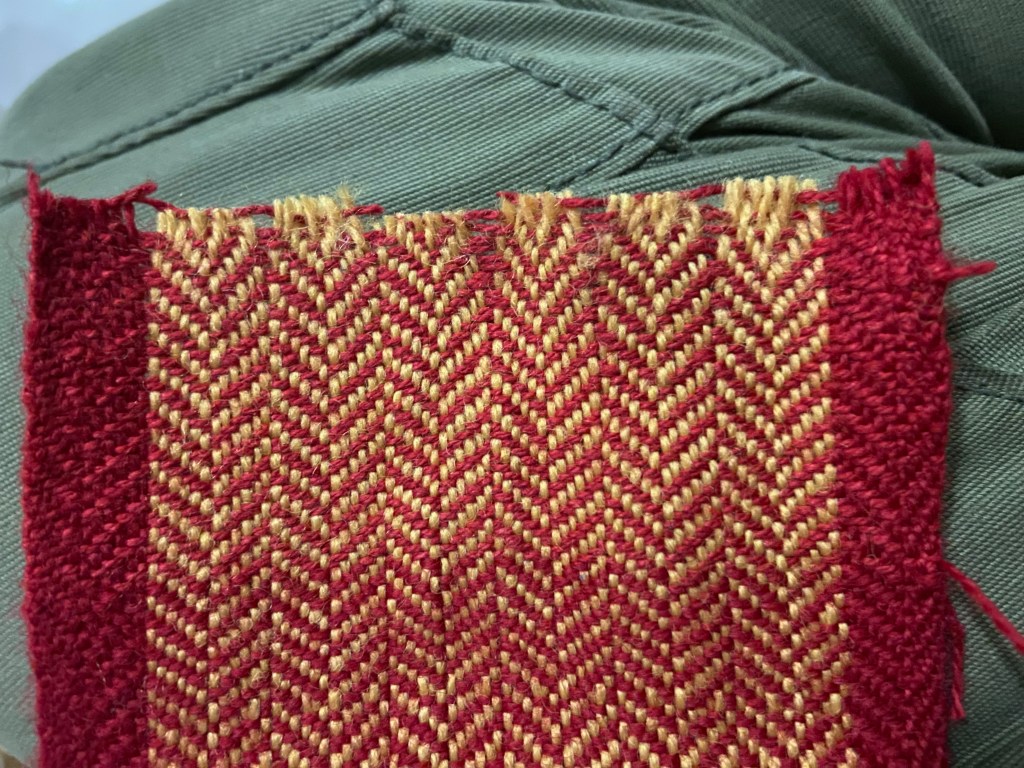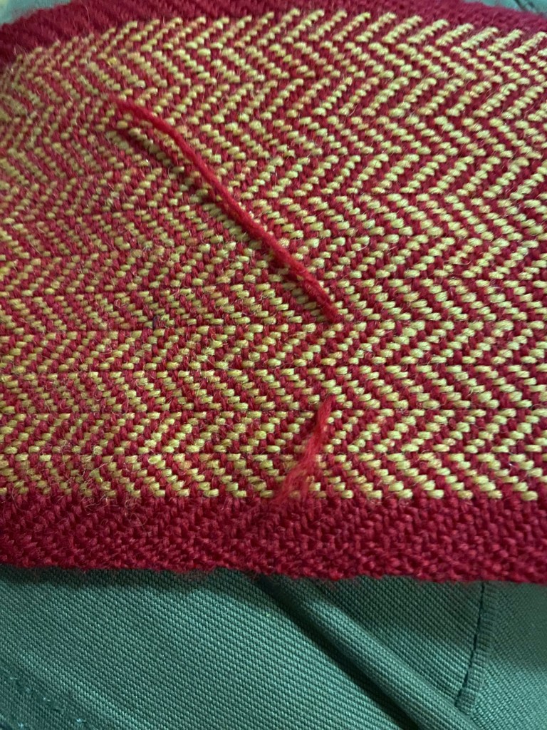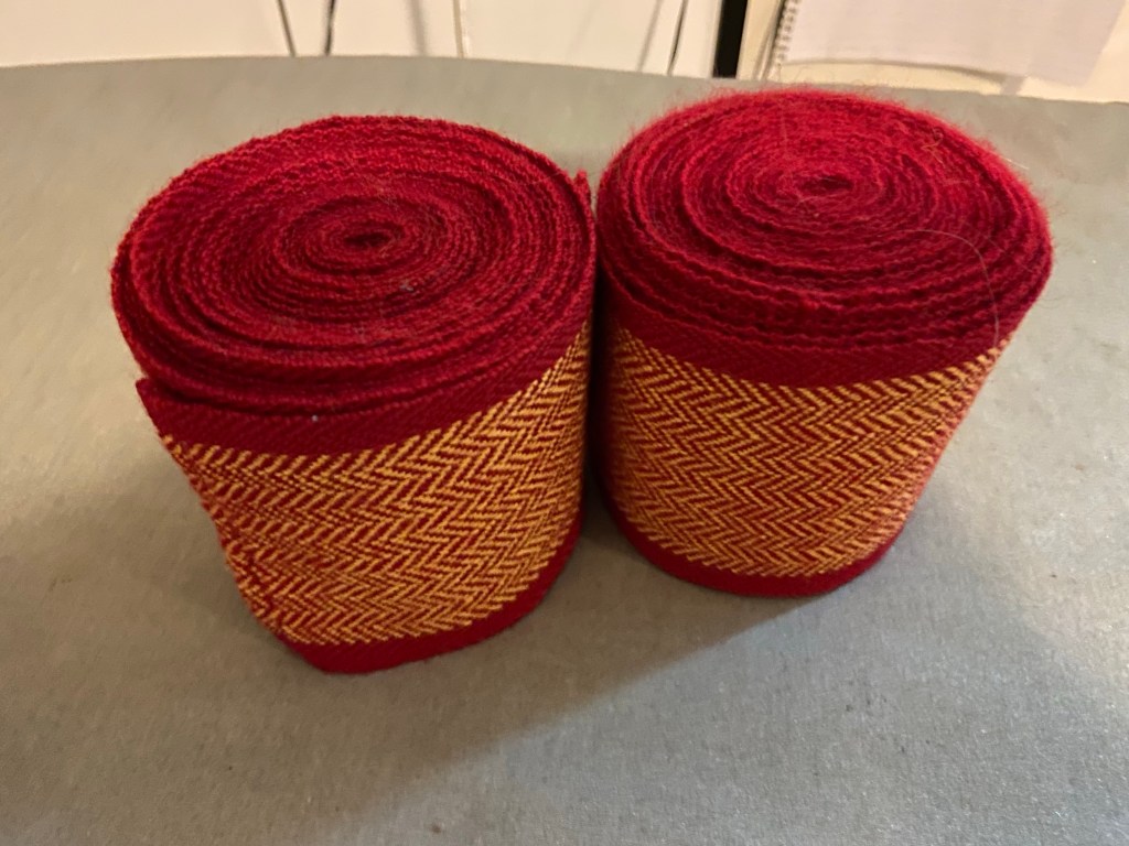Once I’ve done this to both ends the leg wraps are almost finished. I then clean up all of the ends of the weft thread.