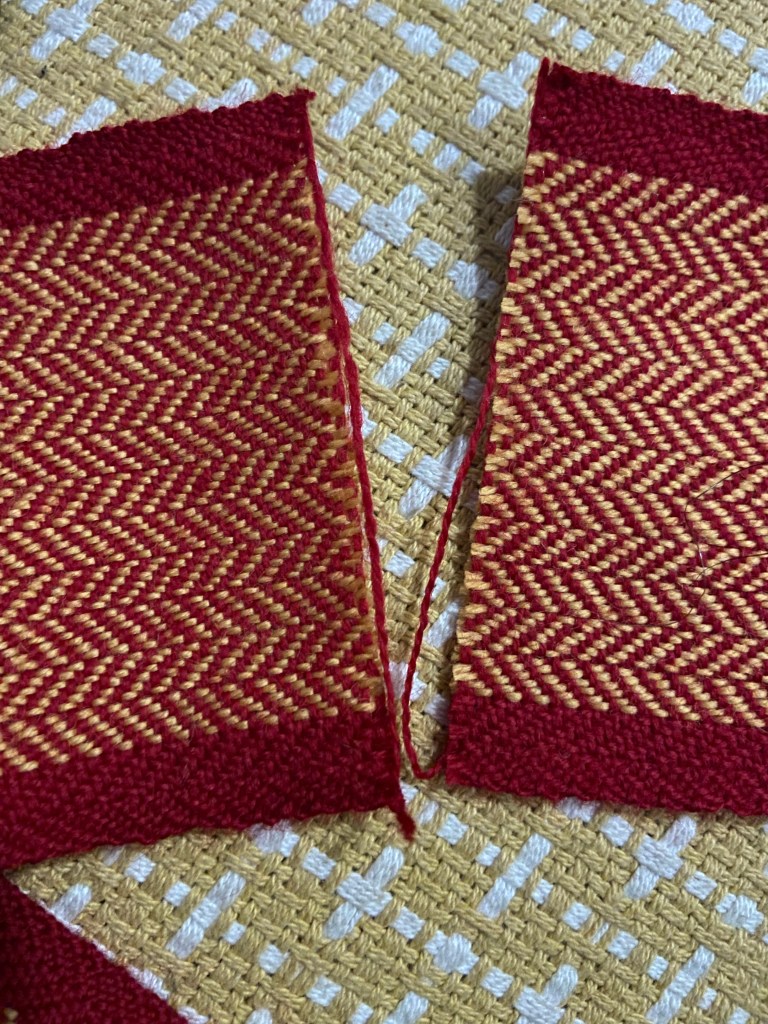 Once I finish weaving I cut the finished piece off the loom